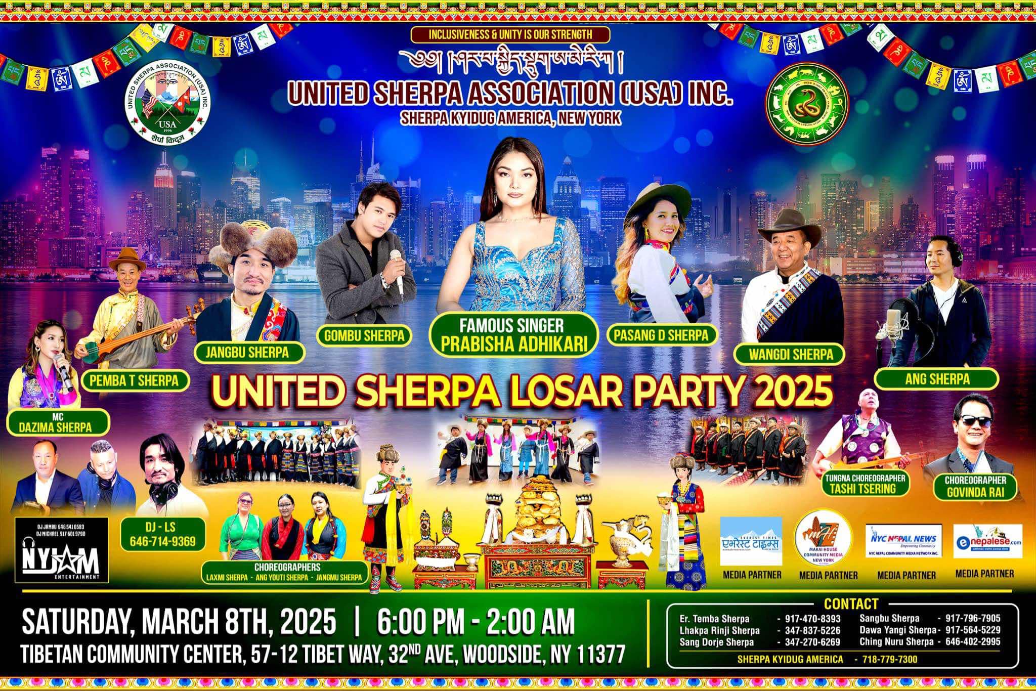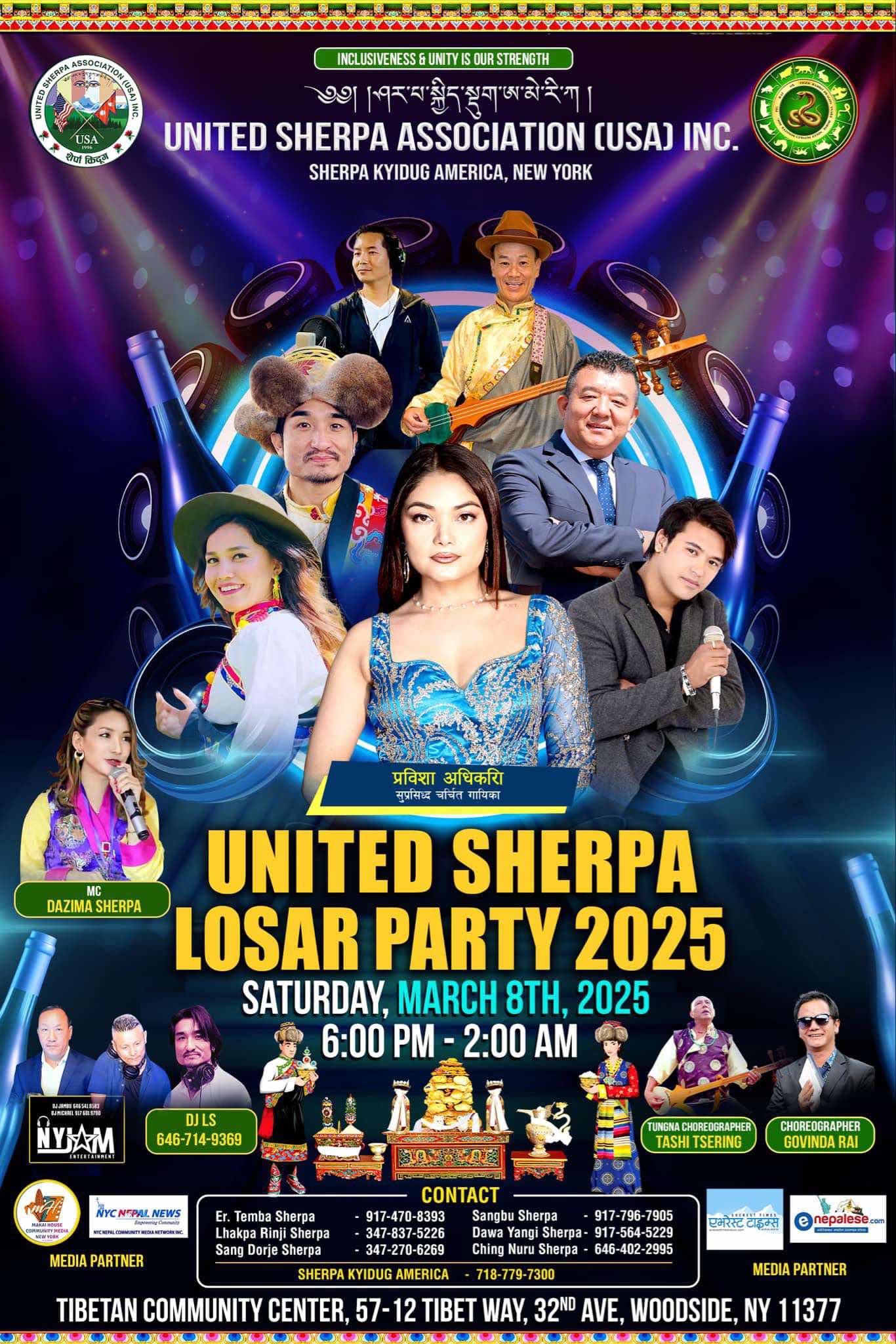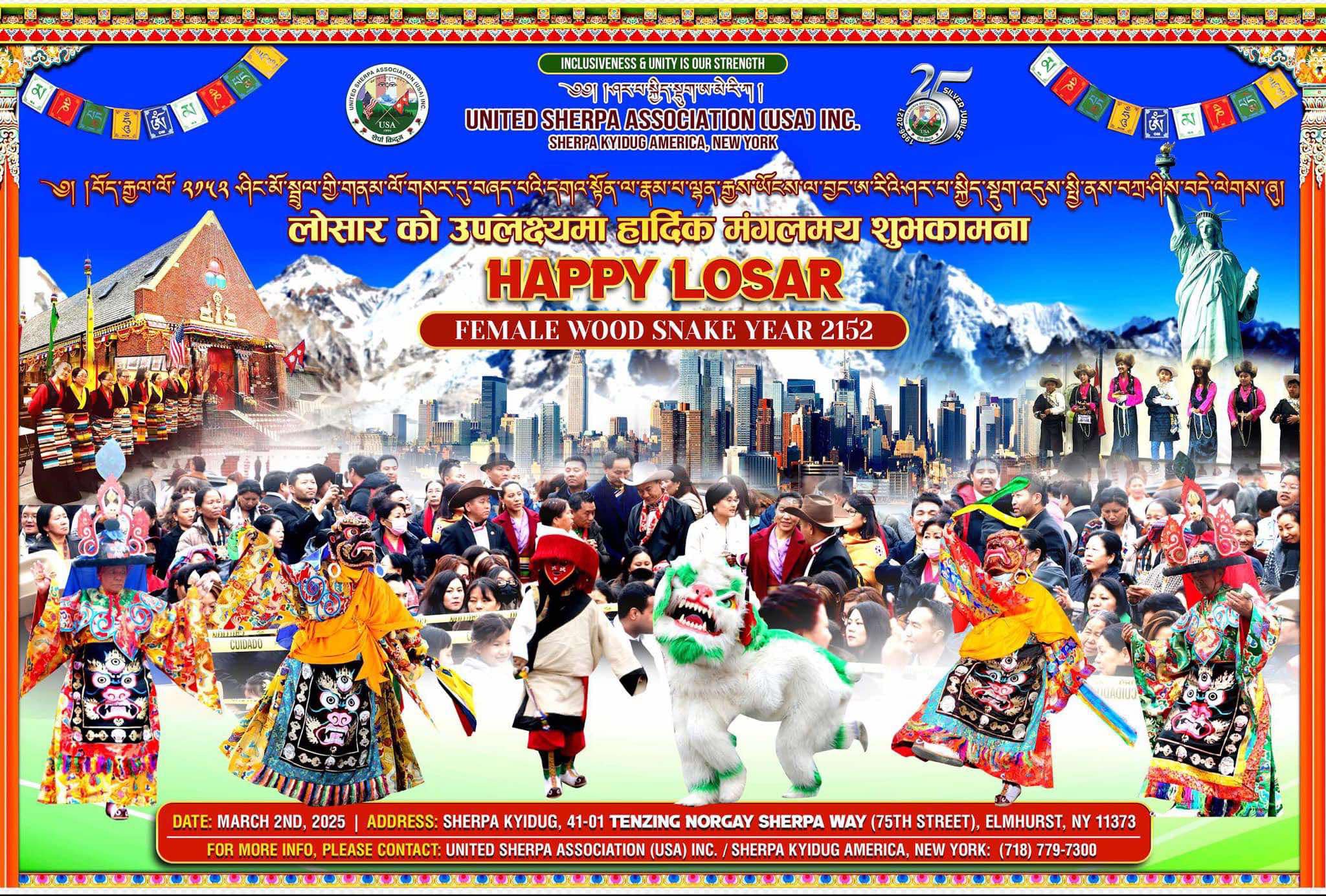 युनाइटेड शेर्पा एसोसिएसन इंक (शेर्पा किदुग) न्यू योर्कले बौध्द धर्मावलम्बीहरुको महान चाड २१५२ औ स्यिङ मो डुल्लो (सर्प बर्ष) ग्याल्पो लोसार विविध धार्मिक तथा साँस्कृतिक कार्यक्रमसाथ मनाउँदैछ।