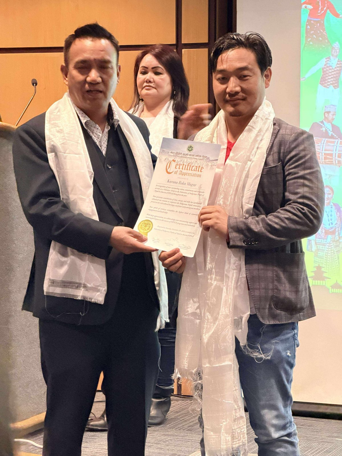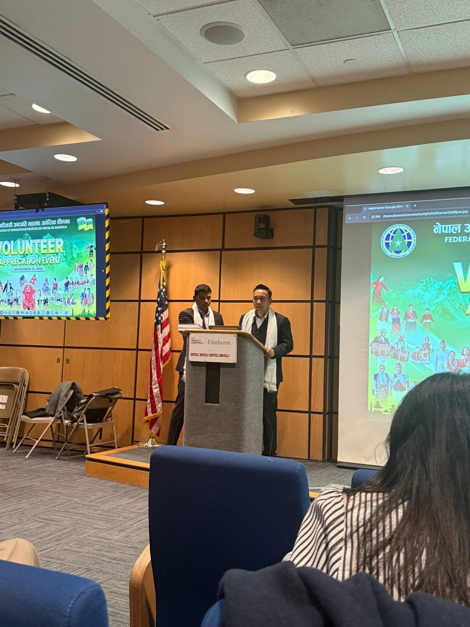 न्यू योर्क। नेपाल आदिवासी जनजाति महांसघ अमेरिका (फिप्ना) ले स्वयंसेवकहरुलाई प्रशंसा पत्रले सम्मान गरेको छ । फिप्नाले एल्महस्र्ट अस्पतालको अडिटोरियममा हलमा हिजो फिप्ना भोलेन्टियर अप्रिशिएसन २०२५ कार्यक्रम गरी भोलेन्टियरहरुको सहयोग र योगदानको कदर स्वरुप सम्मान गरेको हो । कार्यक्रममा फिप्नाले वर्षभरि आयोजना गरेको विभिन्न कार्यक्रमहरूमा योगदान पुुर्याउने स्वयंसेवक, सदस्य संस्थाका प्रतिनिधि तथा कलाकारहरूलाई सम्मान गरेको हो ।