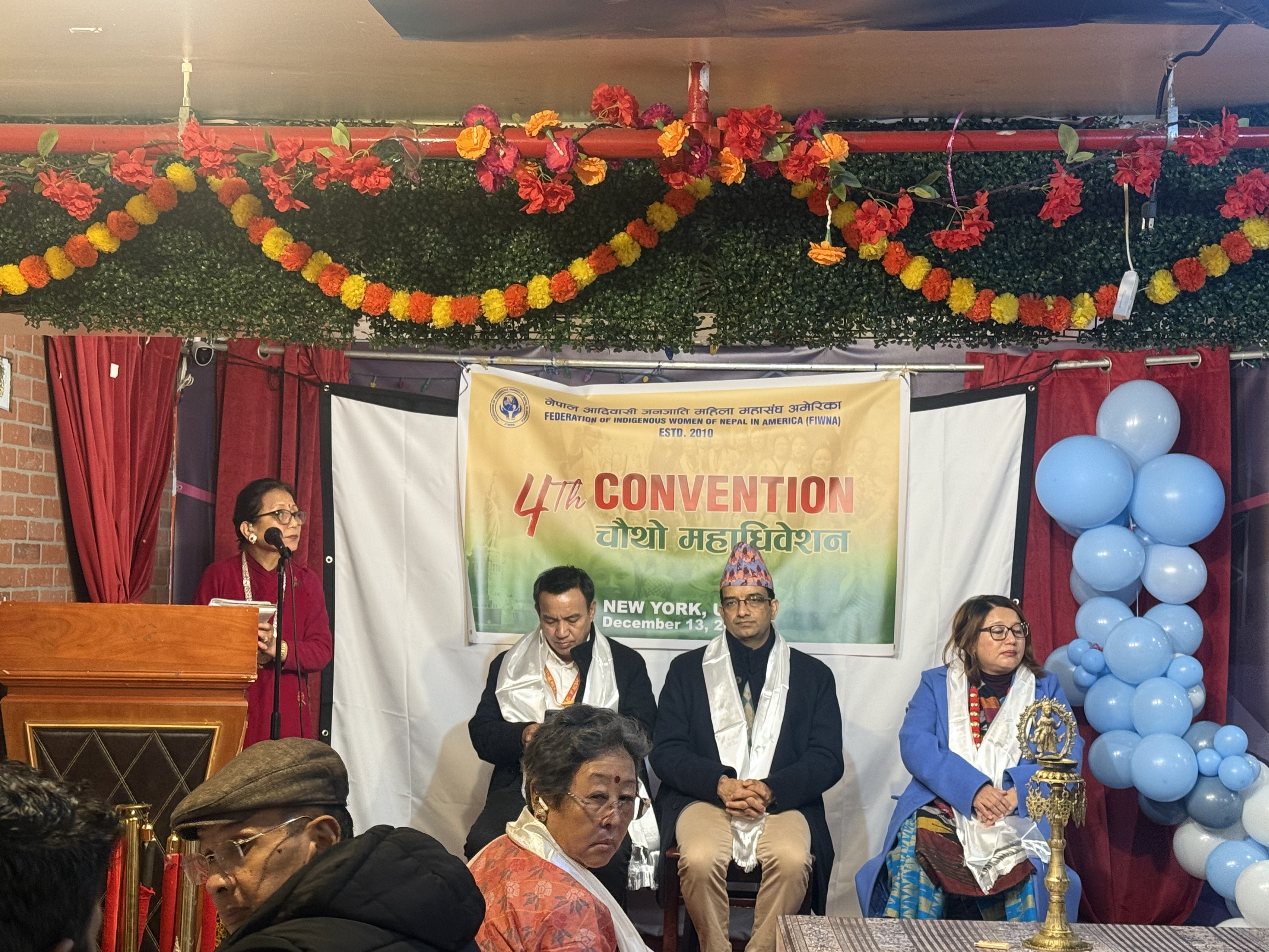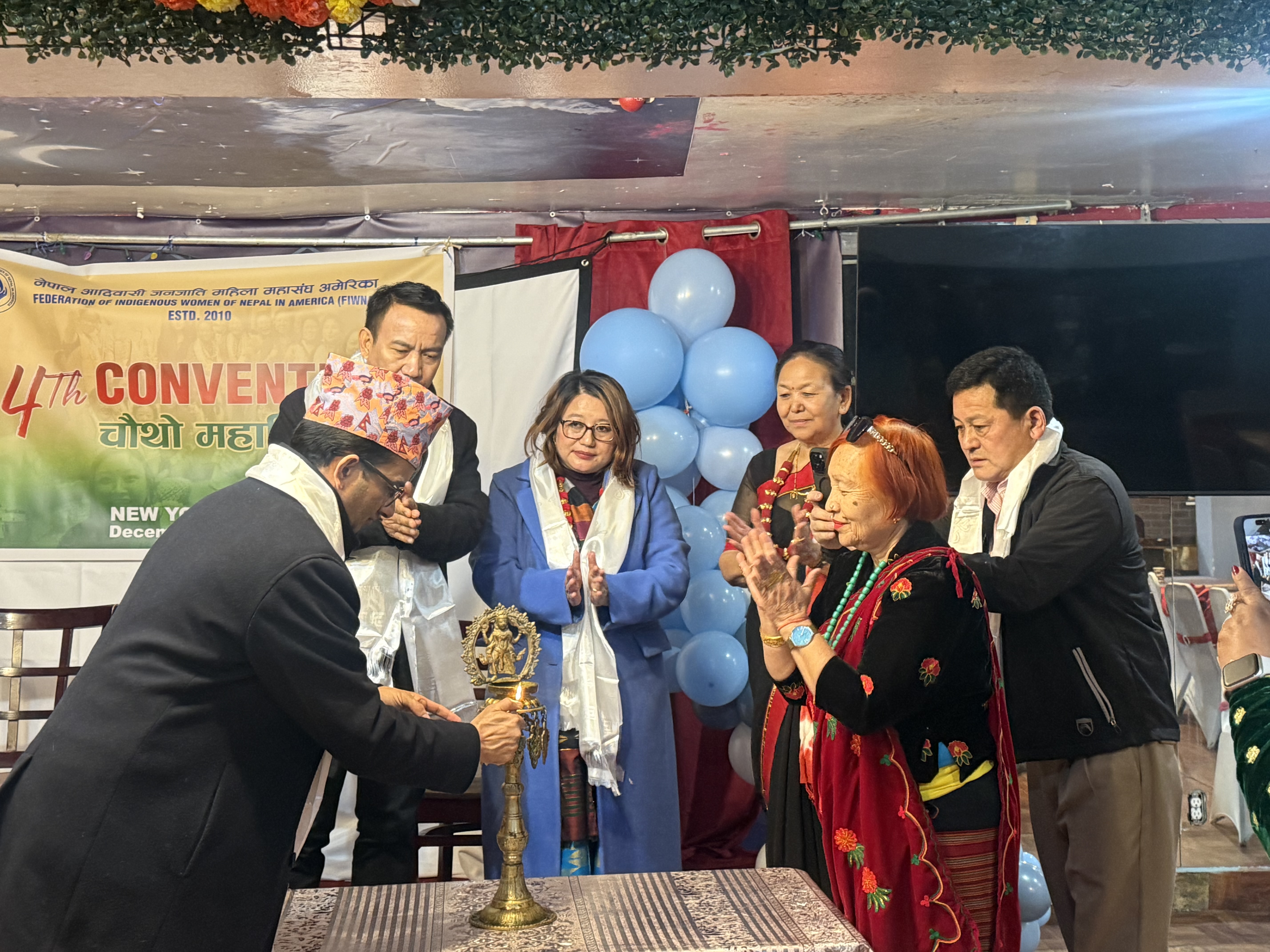 न्यू योर्क। नेपाल आदिवासी जनजाति महिला महासंघ अमेरिका (फिवना) को नयाँ नेतृत्वमा पुनः इन्दिरा चोङबाङ निर्वाचित भएकी छन् । फिवनाको ज्याक्सन हाइट न्यू योर्कमा हिजो भएको चौथो महाधिवेसनले चोङबाङको नेतृत्वमा ११ सदस्यीय नयाँ कार्यसमिति चयन गरेको हो । चोङबाङ दोश्रो कार्यकालको लागि अध्यक्षमा चयन भएकी हुन् । उनी फिवनाको संस्थापक सदस्य समेत हुन् । फिवनाको वरिष्ठ उपाध्यक्षमा इन्दु गुरुङ लामिछाने, उपाध्यक्षमा पूर्व डिआइजी पार्वता थापामगर र महासचिवमा मैया तामाङ चुनिएकी छन् । त्यस्तै सचिवमा इन्दिरा राई, कोषाध्यक्षमा डा. शुभद्रा लिम्बु, सहकोषाध्यक्षमा आभा श्रेष्ठ, कार्य सािमत सदस्यमा बिमला पोमो, मैनासेन बज्राचार्य, निमा शेर्पा, इन्दिरा घर्ति रहेका छन्। फिवनाले संस्थापक अध्यक्ष संगिनी रानामगरको संयोजकत्वमा सदस्यहरु मच्छेदेवी गुरुङ, वन्दना राई र इन्दिरा घर्तिमगर रहेको ४ सदस्यीय निर्वाचन कमिटीलाई अधिवेशन सम्पन्न गर्ने जिम्मेवारी दिएको थियो। निर्वाचन कमिटीले सफलतापूर्वक नयाँ कार्यसमिति चयन गरेको हो ।